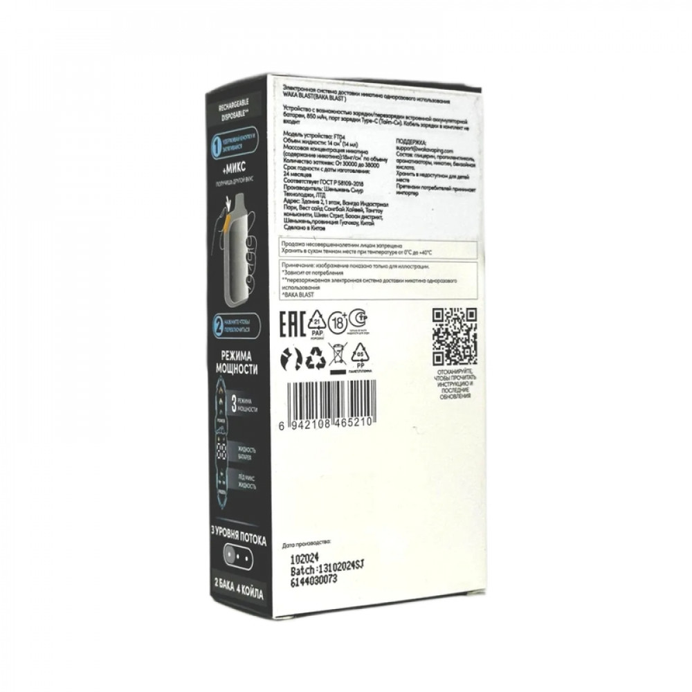 На складе Код товара: WAKA BLAST 38000 Hard - Ментол + лед микс WAKA BLAST 38000 Hard - Ментол + лед микс